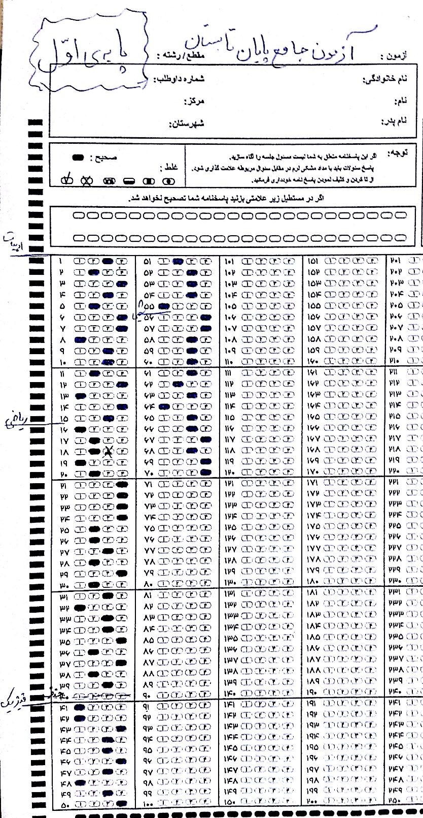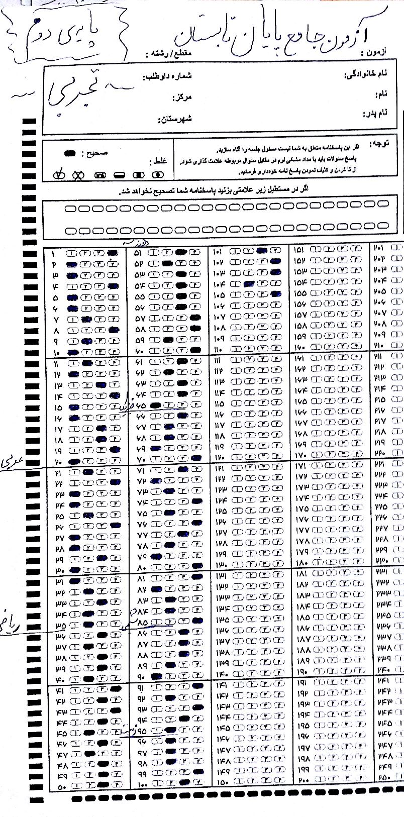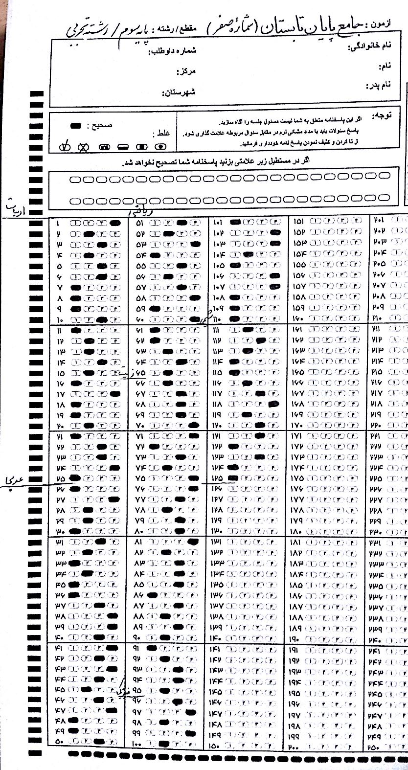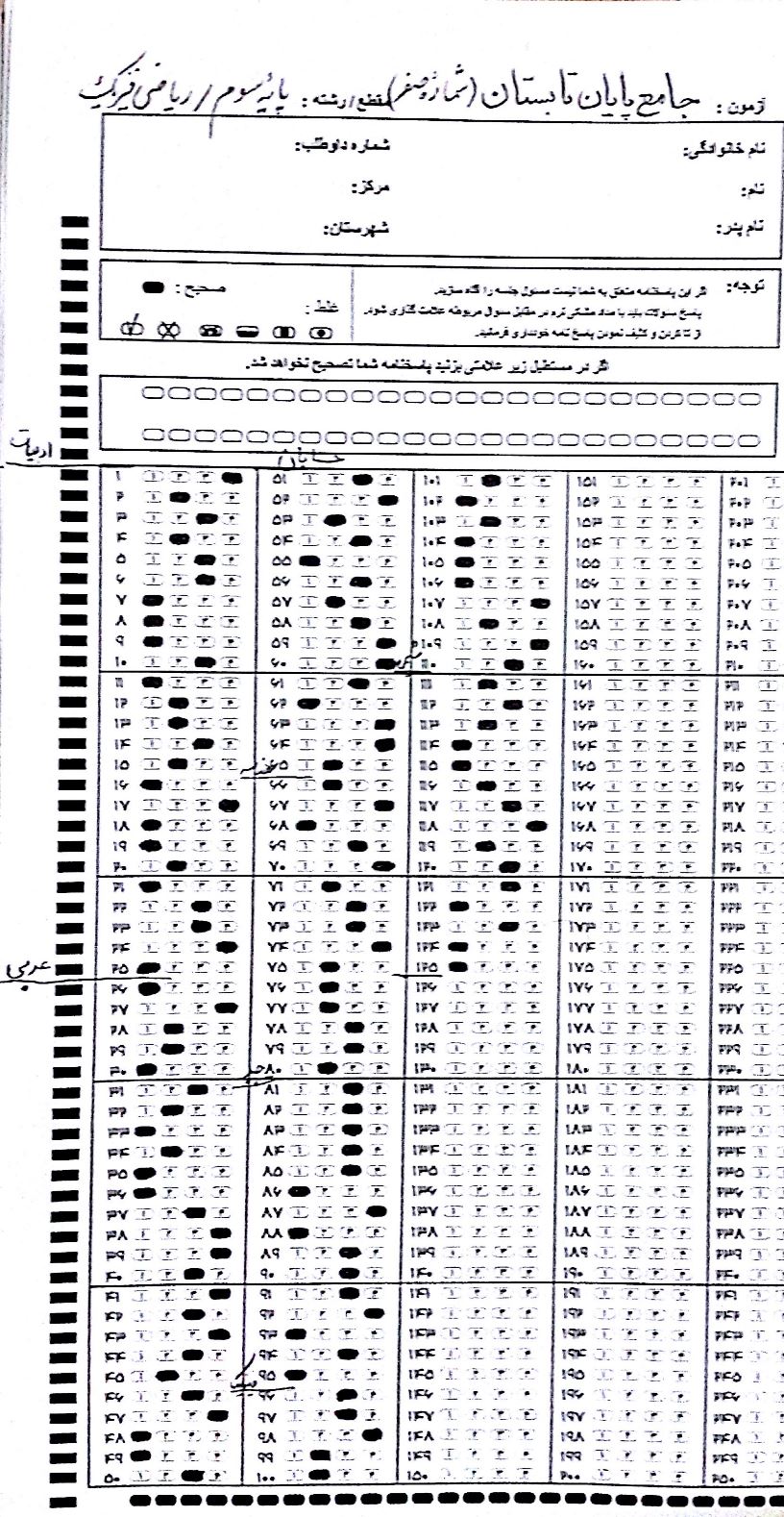 کلید سوالات پایه سوم - رشته ریاضی-فیزیک