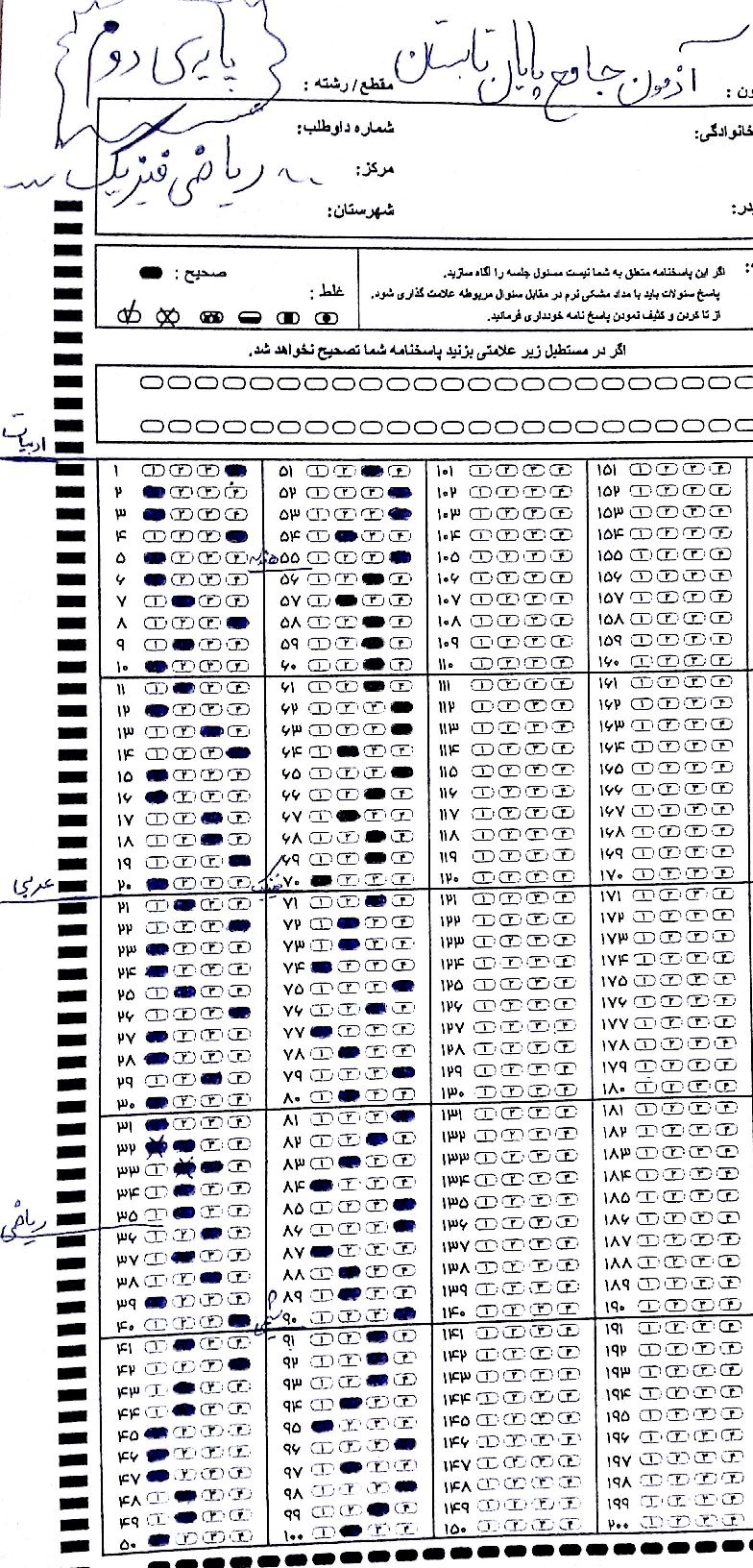 کلید سوالات پایه دوم - رشته ریاضی-فیزیک
